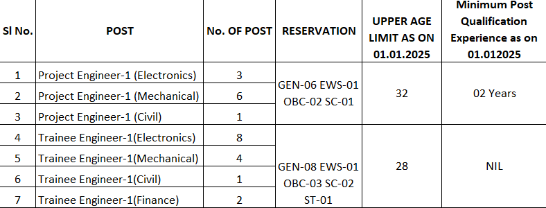 AGE AS ON 01.01.2025: The upper age limit is relaxable for SC, ST candidates by 5 years and for OBC candidates by 3 years. Candidates belonging to Persons with Benchmark Disability (PwBD) category having minimum 40% disability or more will get 10 years’ age relaxation in addition to the relaxation applicable to the categories mentioned above.