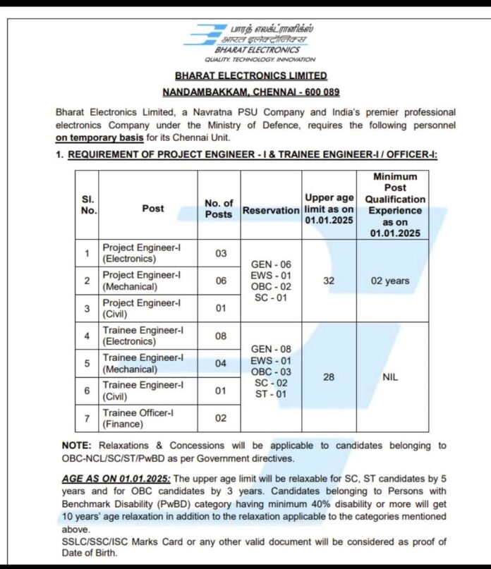 Bharat Electronics Limited, a Navratna PSU Company and India’s premier professional electronics Company