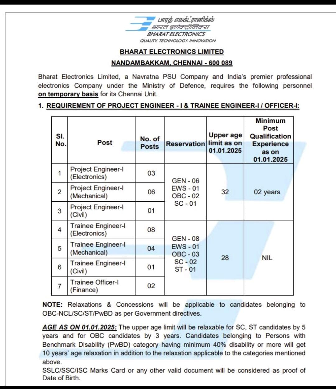 1.REQUIREMENT OF PROJECT ENGINEER-1 & TRAINEE ENGINEER-1/ OFEICER-1: